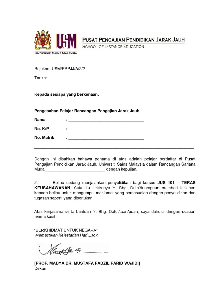 Pdf Contoh Surat Pengesahan Pelajar Dari Pusat Pengajian Amizal Abdul Razak Academia Edu